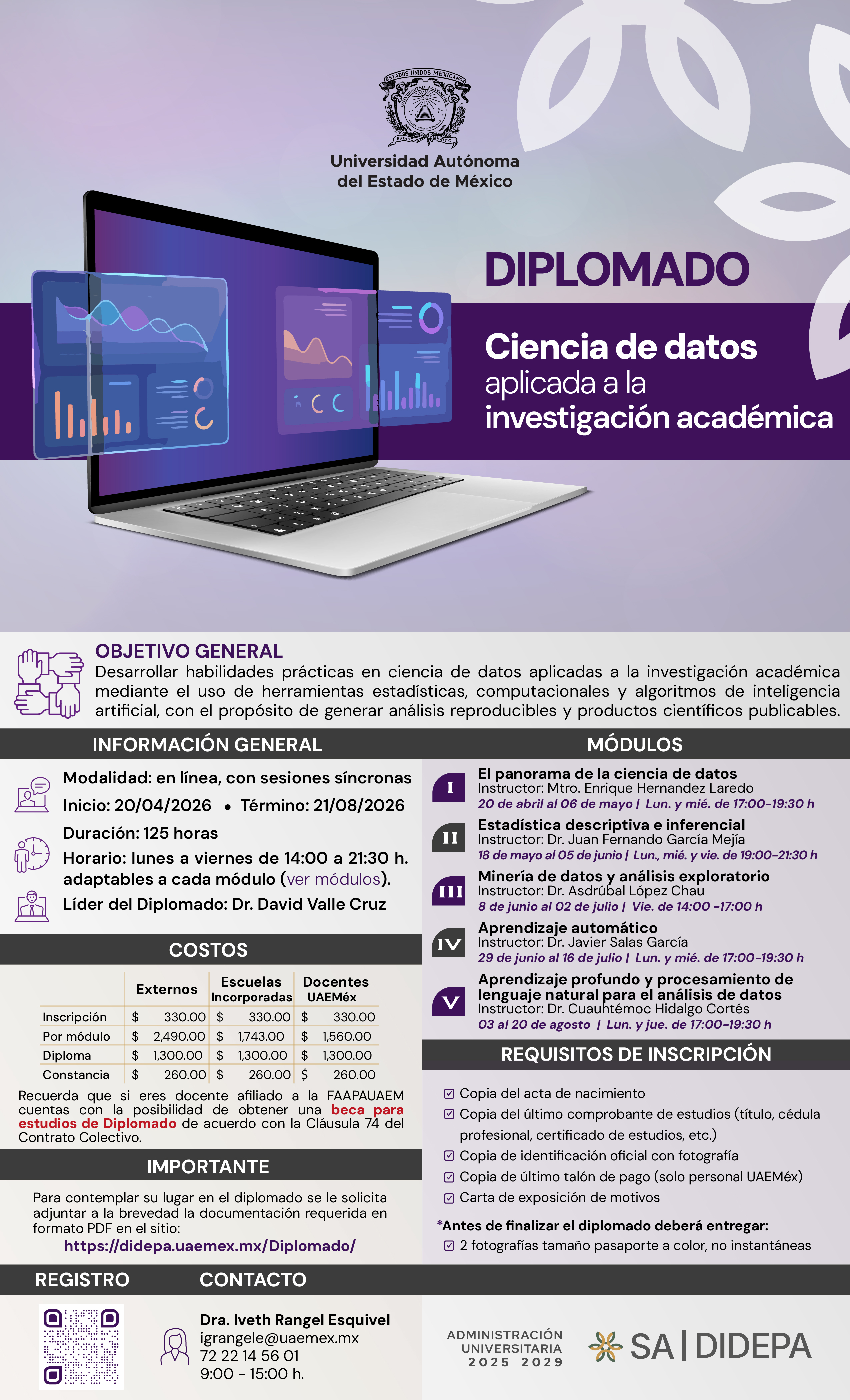 LICENCIATURA EN INFORMÁTICA LICENCIATURA EN INFORMÁTICA ADMINISTRATIVA LICENCIATURA EN LENGUA INGLÉSA LICENCIATURA EN LENGUAS LICENCIATURA EN MATEMATICAS LICENCIATURA EN MEDICINA LICENCIATURA EN MEDICINA VETERINARIA Y ZOOTECNIA LICENCIATURA EN MEDIOS ALTERNOS DE SOLUCIÓN DE CONFLICTOS LICENCIATURA EN MÚSICA LICENCIATURA EN NEGOCIOS INTERNACIONALES LICENCIATURA EN NUTRICION LICENCIATURA EN PEDAGOGÍA LICENCIATURA EN PERIODISMO LICENCIATURA EN PSICOLOGÍA LICENCIATURA EN PSICOPEDAGOGÍA LICENCIATURA EN QUIMICA LICENCIATURA EN QUÍMICO FARMACÉUTICO BIOTECNÓLOGO LICENCIATURA EN RELACIONES ECONOMICAS INTERNACIONALES LICENCIATURA EN RELACIONES INTERNACIONALES LICENCIATURA EN SOCIOLOGÍA LICENCIATURA EN SOCIOLOGÍA DE LA EDUCACIÓN LICENCIATURA EN SOCIOLOGÍA O LETRAS LICENCIATURA EN T.I.C. LICENCIATURA EN TERAPIA OCUPACIONAL LICENCIATURA EN TRABAJO SOCIAL LICENCIATURA EN TURISMO LICENCIATURA ODONTOLOGIA MAESTRÍA MAESTRÍA EN EDUCACIÓN MAESTRÍA EN ADMINISTRACIÓN MAESTRÍA EN ADMINISTRACION DE EMPRESAS MAESTRÍA EN ADMINISTRACIÓN DE NEGOCIOS MAESTRÍA EN ADMINISTRACIÓN DE NEGOCIOS CON ESPECIALIDAD EN CALIDAD Y PRODUCTIVIDAD MAESTRIA EN ADMINISTRACIÓN DE NEGOCIOS EN EL ÁREA DE MERCADOTECNIA MAESTRIA EN ADMINISTRACIÓN DE RECURSOS HUMANOS MAESTRÍA EN ADMINISTRACIÓN PÚBLICA Y GESTIÓN MAESTRÍA EN ADMINISTRACIÓN Y FINANZAS MAESTRÍA EN ALTA DIRECCIÓN MAESTRÍA EN ALTA DIRECCIÓN EN SISTEMAS DE INFORMACIÓN MAESTRÍA EN ANÁLISIS SOCIAL MAESTRÍA EN ANTROPOLOGÍA Y ESTUDIOS DE LA CULTURA MAESTRÍA EN AUDITORÍA MAESTRÍA EN CALIDAD AMBIENTAL MAESTRÍA EN CIENCIAS MAESTRÍA EN CIENCIAS AGROPECUARIAS Y CIENCIAS NATURALES MAESTRÍA EN CIENCIAS AMBIENTALES MAESTRÍA EN CIENCIAS BIOQUÍMICAS MAESTRÍA EN CIENCIAS COMPUTACIONALES MAESTRÍA EN CIENCIAS DE LA COMUNICACIÓN MAESTRÍA EN CIENCIAS DE LA EDUCACIÓN MAESTRÍA EN CIENCIAS DE LA EDUCACIÓN FAMILIAR MAESTRÍA EN CIENCIAS DE LA INGENIERÍA MAESTRÍA EN CIENCIAS EN CIENCIAS FORESTALES MAESTRÍA EN CIENCIAS EN ECONOMÍA AGRÍCOLA Y DE LOS RECURSOS NATURALES MAESTRÍA EN CIENCIAS ODONTOLÓGICAS MAESTRÍA EN CIENCIAS PEDAGÓGICAS MAESTRÍA EN CIENCIAS QUÍMICAS. MAESTRÍA EN CIENCIAS Y ARTES PARA EL DISEÑO MAESTRÍA EN COACHING INTEGRAL Y ORGANIZACIONAL MAESTRÍA EN COMPETENCIAS DOCENTES MAESTRÍA EN COMUNICACIÓN MAESTRÍA EN COMUNICACIÓN EMPRESARIAL MAESTRÍA EN CONTADURIA MAESTRÍA EN CRIMINOLOGÍA MAESTRÍA EN DERECHO MAESTRÍA EN DERECHO ELECTORAL MAESTRÍA EN DERECHO PARLAMENTARIO MAESTRÍA EN DERECHO PENAL Y CRIMINALÍSTICA MAESTRÍA EN DESARROLLO EDUCATIVO MAESTRÍA EN DESARROLLO HUMANO MAESTRÍA EN DESARROLLO Y EVALUACIÓN DE SISTEMAS EDUCATIVOS MAESTRÍA EN DESEMPEÑO Y GESTIÓN ESCOLAR MAESTRÍA EN DISEÑO MAESTRÍA EN DISEÑO DE INTERIORES MAESTRÍA EN DISEÑO ESTRATÉGICO MAESTRÍA EN DOCENCIA MAESTRÍA EN DOCENCIA Y ADMINISTRACIÓN DE LA EDUCACIÓN SUPERIOR MAESTRÍA EN ECONOMÍA MAESTRÍA EN EDUCACIÓN MAESTRÍA EN EDUCACIÓN CON ORIENTACIÓN EN INNOVACIÓN Y TECNOLOGÍA EDUCATIVA MAESTRÍA EN EDUCACIÓN CON ORIENTACIÓN EN TUTORÍA MAESTRÍA EN EDUCACION PARA LA PAZ MAESTRÍA EN EDUCACION SUPERIOR MAESTRÍA EN ENFERMERÍA QUIRÚRGICA MAESTRÍA EN ENSEÑANZA DE INGLÉS MAESTRÍA EN ENSEÑANZA Y APRENDIZAJE ABIERTA Y A DISTANCIA MAESTRÍA EN ESTUDIOS HUMANÍSTICOS MAESTRÍA EN ESTUDIOS LATINOAMERICANOS MAESTRÍA EN ESTUDIOS SUSTENTABLES REGIONALES Y METROPOLITANOS MAESTRÍA EN ESTUDIOS URBANOS Y REGIONALES MAESTRÍA EN ESTUDIOS VISUALES MAESTRÍA EN EVALUACIÓN MAESTRIA EN FILOSOFIA MAESTRÍA EN FORMACIÓN DOCENTE MAESTRÍA EN GEOGRAFÍA MAESTRÍA EN GESTIÓN DOCENTE MAESTRIA EN GESTION EDUCATIVA MAESTRÍA EN GESTIÓN Y DESARROLLO DE NUEVAS TECNOLOGÍAS MAESTRÍA EN HISTORIA MAESTRÍA EN HUMANIDADES: ÉTICA SOCIAL MAESTRÍA EN IMPUESTOS MAESTRIA EN INFORMATICA MAESTRÍA EN INGENIERIA MAESTRÍA EN INGENIERÍA Y TECNOLOGÍA AMBIENTAL MAESTRÍA EN INVESTIGACIÓN DE LA EDUCACIÓN MAESTRÍA EN JUICIO DE AMPARO EN EL SISTEMA ACUSATORIO ADVERSARIAL MAESTRIA EN JUICIOS ORALES MAESTRÍA EN LINGUISTICA APLICADA MAESTRIA EN LOGISTICA Y CADENA DE SUMINISTRO MAESTRÍA EN MATEMÁTICAS APLICADAS MAESTRÍA EN MEDICINA VETERINARIA Y ZOOTECNIA MAESTRÍA EN MEDIOS DIGITALES MAESTRIA EN MUSICOTERAPIA MAESTRIA EN POLITICA CRIMINAL MAESTRÍA EN PRACTICA DOCENTE MAESTRÍA EN PRÁCTICA EDUCATIVA DEL NIVEL MEDIO SUPERIOR MAESTRÍA EN PSICOBIOLOGIA MAESTRÍA EN PSICOLOGÍA CLÍNICA Y DE LA SALUD MAESTRÍA EN SALUD FAMILIAR Y COMUNITARIA MAESTRÍA EN SALUD PÚBLICA MAESTRÍA EN SEGURIDAD DE TECNOLOGÍAS DE LA INFORMACIÓN MAESTRIA EN SEGURIDAD E HIGIENE OCUPACIONAL MAESTRIA EN SOCIOLOGIA MAESTRÍA EN SOCIOLOGÍA DE LA SALUD MAESTRÍA EN TECNOLOGÍA DE LA EDUCACIÓN MAESTRÍA EN TECNOLOGÍA DIGITAL PARA LA EDUCACIÓN MAESTRIA EN TECNOLOGÍAS DE ANALISIS DE DATOS MASIVOS. BIG DATA MAESTRIA EN TICS MAESTRÍA EN TRADUCCIÓN E INTERPRETACIÓN MEDICO PEDIATRA NO ESPECIFICADO PASANTE POSGRADO EN ENDOPERIODONTOLOGÍA TÉCNICO